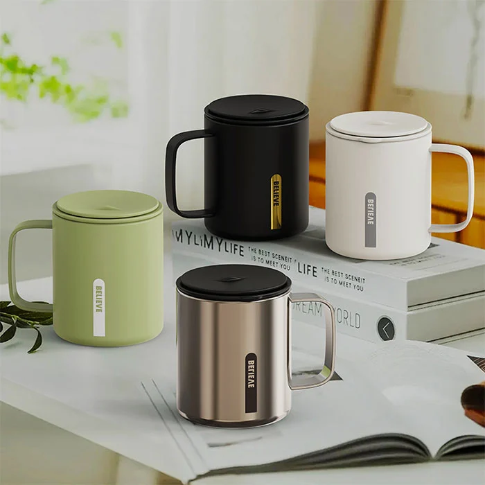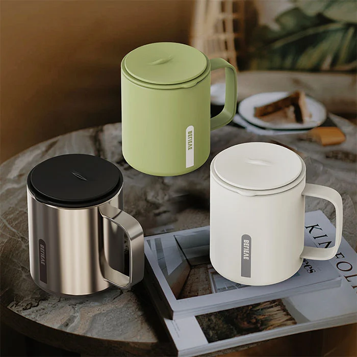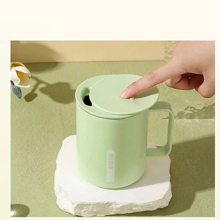 Seduto in ufficio per lunghi periodi di tempo mentre si beve acqua, l'apertura del coperchio con un clic non disturba il lavoro, fornendo isolamento e raffreddamento, adatto per caffè e tè;