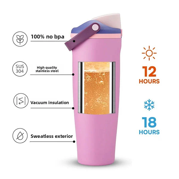 * Bere senza stress: il tappo è semplice senza dettagli in eccesso e puoi bere da qualsiasi angolazione piacevolmente, come bere da un bicchiere o da una tazza. Il bicchiere in acciaio inossidabile a doppia parete, con un vuoto tra le pareti interne ed esterne, impedisce il trasferimento di calore.