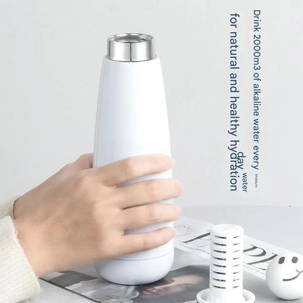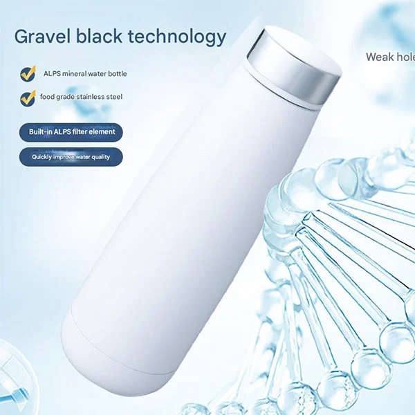 Perché un'acquaCoppa isolata purificante? Abbiamo progettato un'area di stoccaggio del tè sul coperchio e al suo interno abbiamo collocato speciali materiali ecologici: particelle minerali delle Alpi. Le particelle di Alpi sono ricche di elementi come alluminio, magnesio, ferro, sodio e potassio. Questi elementi sono utili per la salute e possono migliorare l'acidità e l'alcalinità dell'acqua. Quando bevi acqua, l'acqua passa attraverso queste particelle per la purificazione, diventando leggermente alcalino. Questo rende la tua acqua potabile più sicura.