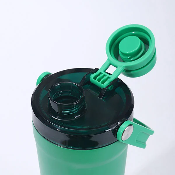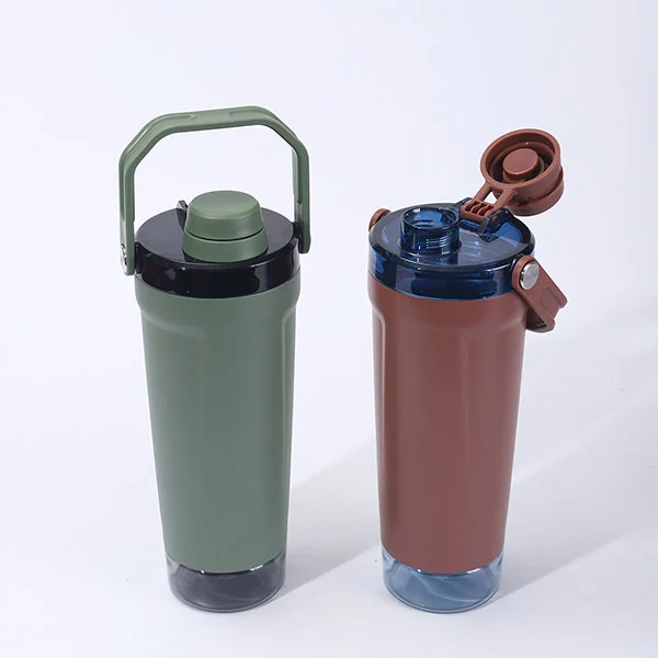 Il fondo della bottiglia Shakers è progettato con un vano portaoggetti in materiale PC, che può contenere proteine in polvere quotidiane, foglie di tè, medicinali, ecc. Questo design a prova di perdite è progettato per separarsi dall'acciaio inossidabile sul fondo