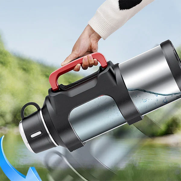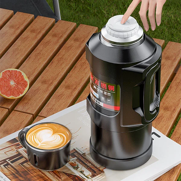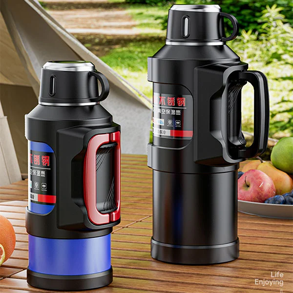 Si tratta di un pallone thermos di grande capacità con una capacità massima di 6 litri. Un secchio d'acqua è equivalente a 12 bottiglie d'acqua minerali normali, che è sufficiente per soddisfare l'assunzione di acqua di una persona per tre giorni durante un viaggio.