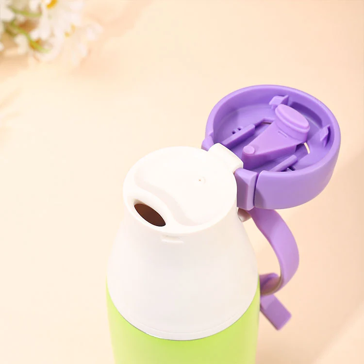La bottiglia termica sottovuoto in acciaio inossidabile 304 appartiene alle bottiglie per il latte alla dopamina, con un coperchio circolare che può essere facilmente aperto con una trazione e bloccato con una semplice pressione per evitare l'apertura accidentale del tappo della bottiglia.