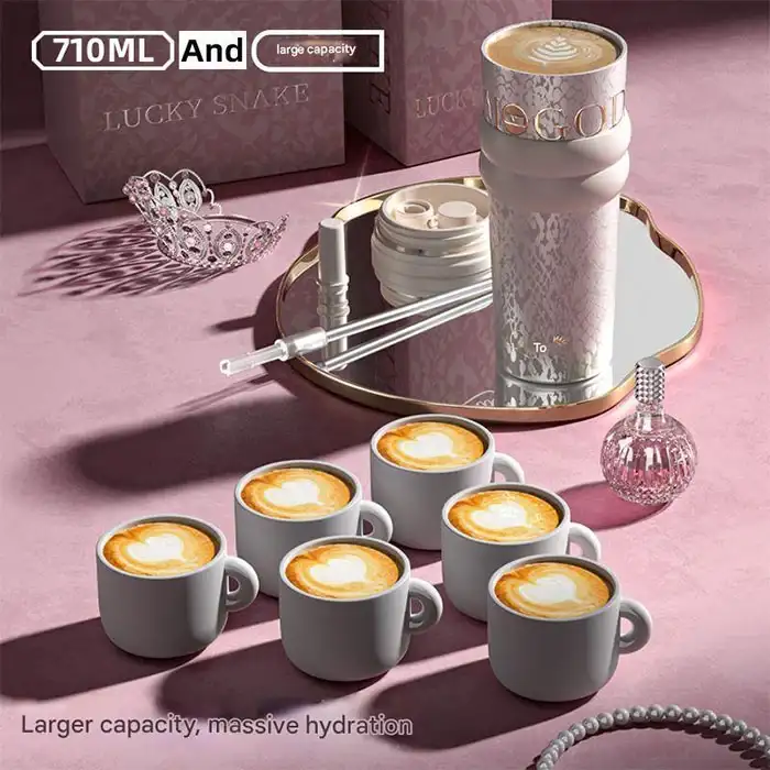 Scegliere un bicchiere a tenuta stagna Victoria durevole Kudike significa scegliere una vita raffinata e senza compromessi. Questo bicchiere a tenuta stagna Victoria è una lettera d'amore scritta a ogni donna indipendente. Utilizza il nome "Regina" per ricordarti di amare te stesso e di vivere una vita elegante come una regina, non importa quando o dove. Il delicato e tridimensionale processo di goffratura del motivo serpente presenta una texture opaca di fascia alta sotto un aspetto leggero, sobrio ma pieno di fascino selvaggio, retrò ma alla moda.
